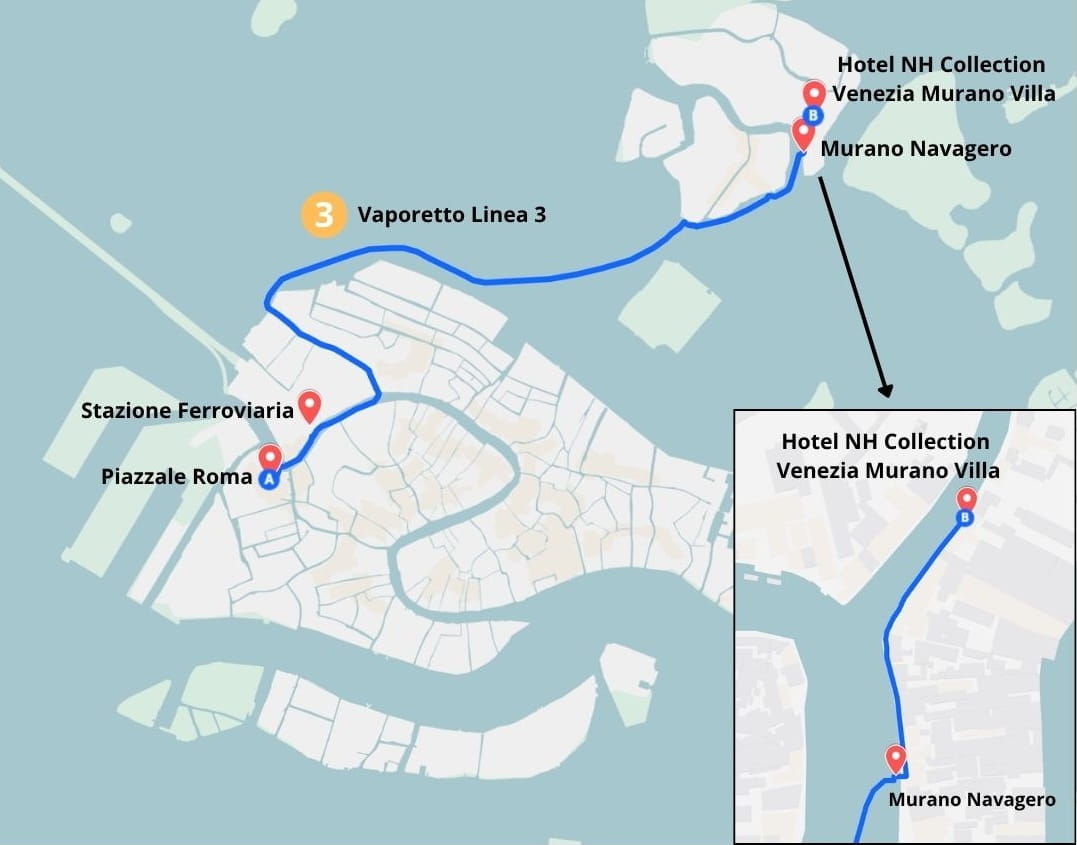 Prendere la Linea 3 del vaporetto, diretta verso Murano.